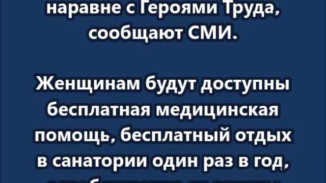 Одобрен проект о предоставлении льгот матерям-героиням наравне с Героями Труда