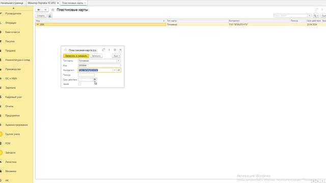 АТП. Закрепление платиковых карт за ТС