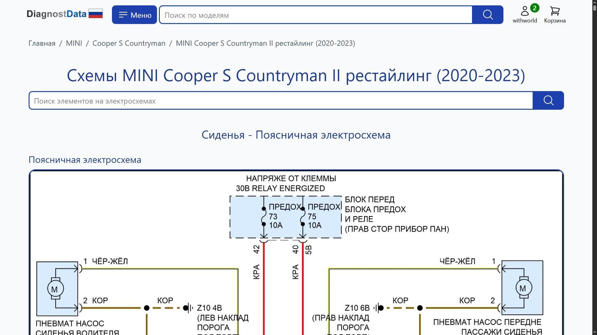 https://diagnostdata.ru/mini/cooper-s-countryman/ii-2020-2023/ Электрохемы, распиновки, схемы электропроводки MINI Cooper S Countryman II рестайлинг (2020, 2021, 2022, 2023 годов выпуска) 1.5L TURBO, 1.5L TURBO HYBRID, 2.0L TURBO Схемы на русском языке для систем: Схемы Сиденья, Схемы Сиденья, Схемы Магнитола, Схемы Дворники и омыватели, Схемы Память, Схемы Подушки безопасности, Схемы Коробка передач, Схемы Сигнализация, Схемы Складная крыша/люк, Схемы Блоки управления кузовом, Схемы Активные управление кузовом и подвеской, Схемы Антиблокировочная система abs, Схемы Освещение салона, Схемы Блокировка селектора, Схемы Can шина, Схемы Фары, Схемы Круиз-контроль, Схемы Точки подключения масс, Схемы Управление зеркалами заднего вида, Схемы Блок предохранителей и реле, Схемы Багажник, задняя дверь, лючок топливного бака, Схемы Предупреждение, Схемы Системы помощи водителю, Схемы Вентилятор охлаждения, Схемы Фары и фонари, Схемы Электронная подвеска, Схемы Приборная панель, Схемы Кондиционирование воздуха, Схемы Стартер/генератор, Схемы Центральный замок, Схемы Клаксон, Схемы Подогрев стекол, Схемы Стеклоподъемники, Схемы Электроусилитель руля, Схемы Двигатель, и др.