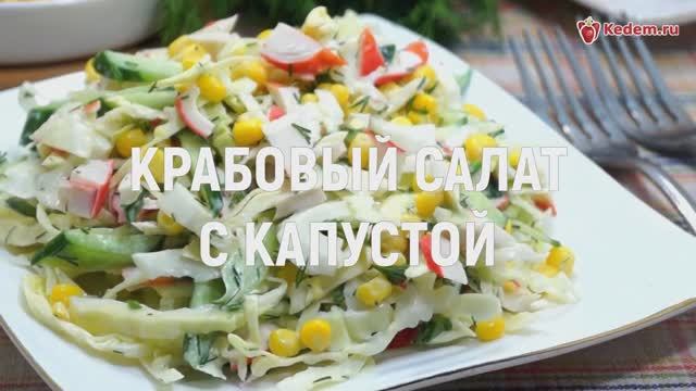 Крабовый салат с капустой, это очень вкусный крабовый салат со свежей капустой и огурцом, который станет любимцем для всех, кто обожает крабовые палочки. Еще больше рецептов смотрите на нашем сайте https://kedem.ru/recepty-s-foto/ Время приготовления: 15 минут. Ингредиенты: 100 г крабовых палочек, 200 г белокочанной капусты, 1 банка консервированной кукурузы, 2-3 ст. ложки майонеза, 1 свежий огурец, 1 пучок укропа, соль по вкусу. Приготовление: Овощи и зелень промыть и обсушить. Крабовые палочки очистить от упаковки. В миску нарезать соломкой крабовые палочки и огурец. Добавить нашинкованную капусту и укроп. Добавить консервированную кукурузу и майонез. Перемешать салат и посолить по вкусу. Выложить на блюдо. Крабовый салат с капустой готов. Можно подавать к столу. Приятного аппетита! #еда #рецепты #вкусно #кулинария #рецепт #чтоприготовить #кулинарныйэдем