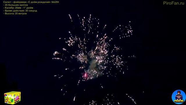 Салют TKB284 25 больших залпов "С днём рождения" 25мм - 1" дюйм в PiroFan.ru