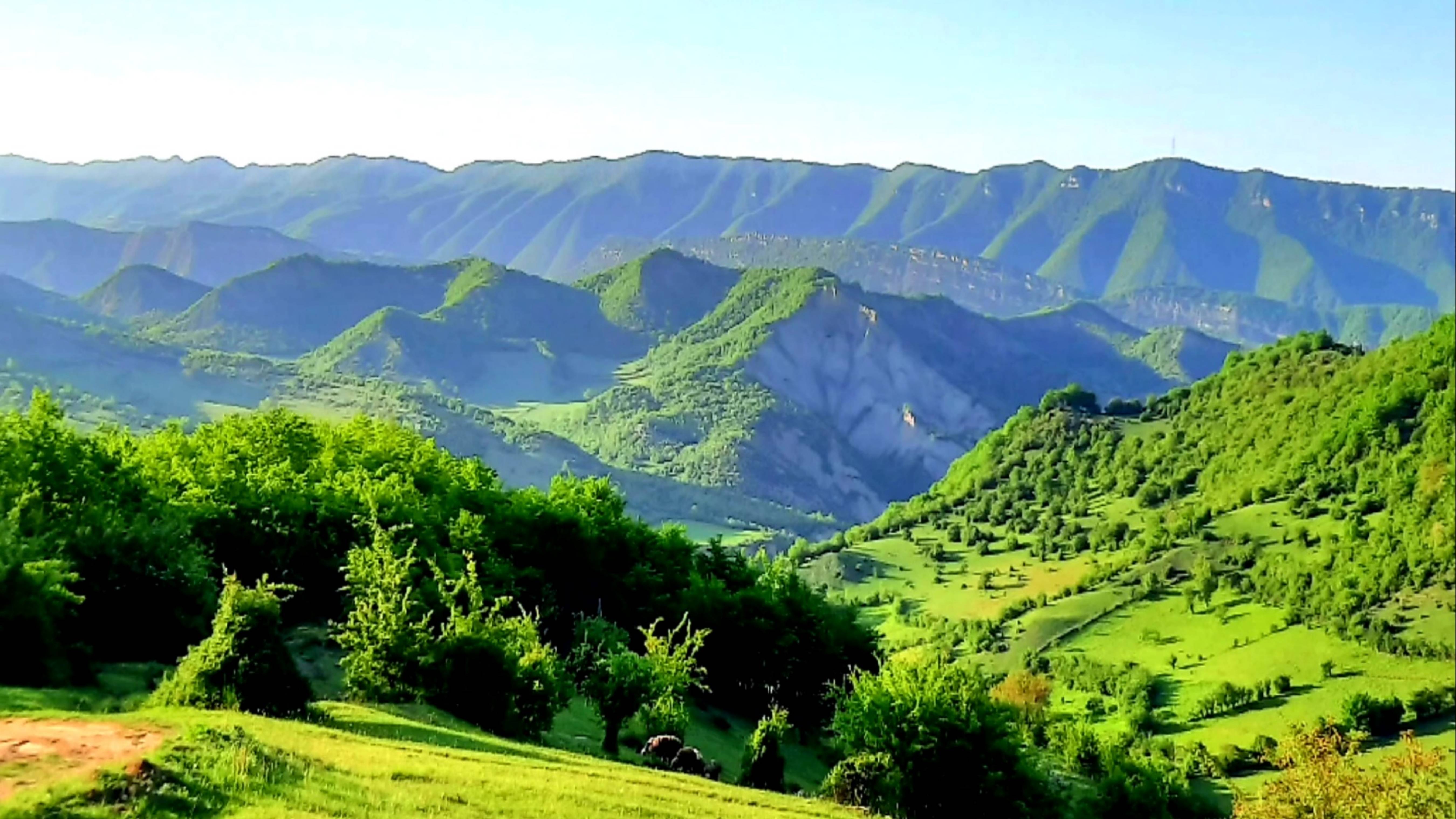Красивые пейзажи, горы и луга.