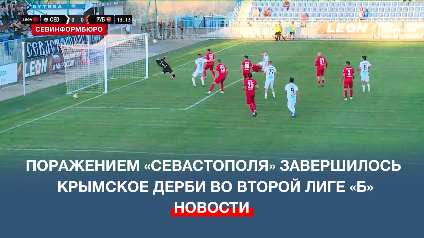 Поражением «Севастополя» завершилось очередное крымское дерби в рамках Leon-Второй лиги «Б». 21 сентября наша команда на родном стадионе принимала «Рубин» из Ялты. Хозяевам – они в белом – довольно быстро удалось выйти вперёд. На 14-й минуте Максим Супрун добил отскочивший от штанги мяч в ворота соперника. Подписывайтесь на наш Телеграм-канал: https://t.me/nts_novosti Смотрите новости Севастополя и Крыма на сайте НТС: http://nts-tv.com В нашей группе "ВКонтакте": https://vk.com/ntssevastopol На странице в "Одноклассниках": https://ok.ru/ntssevastopol