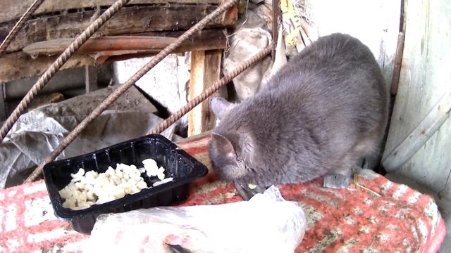 Охраняю кошку от кур) пока поест.