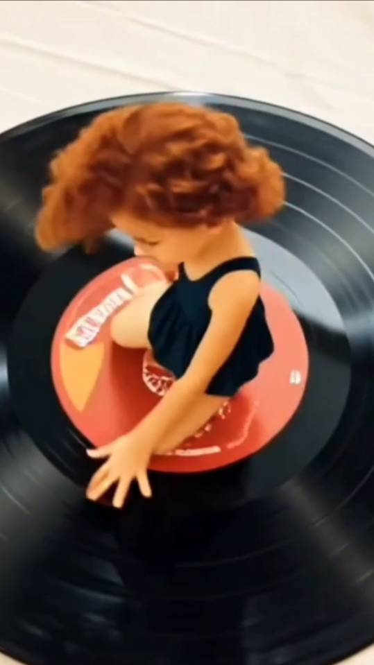 кукла стоит на пластинке