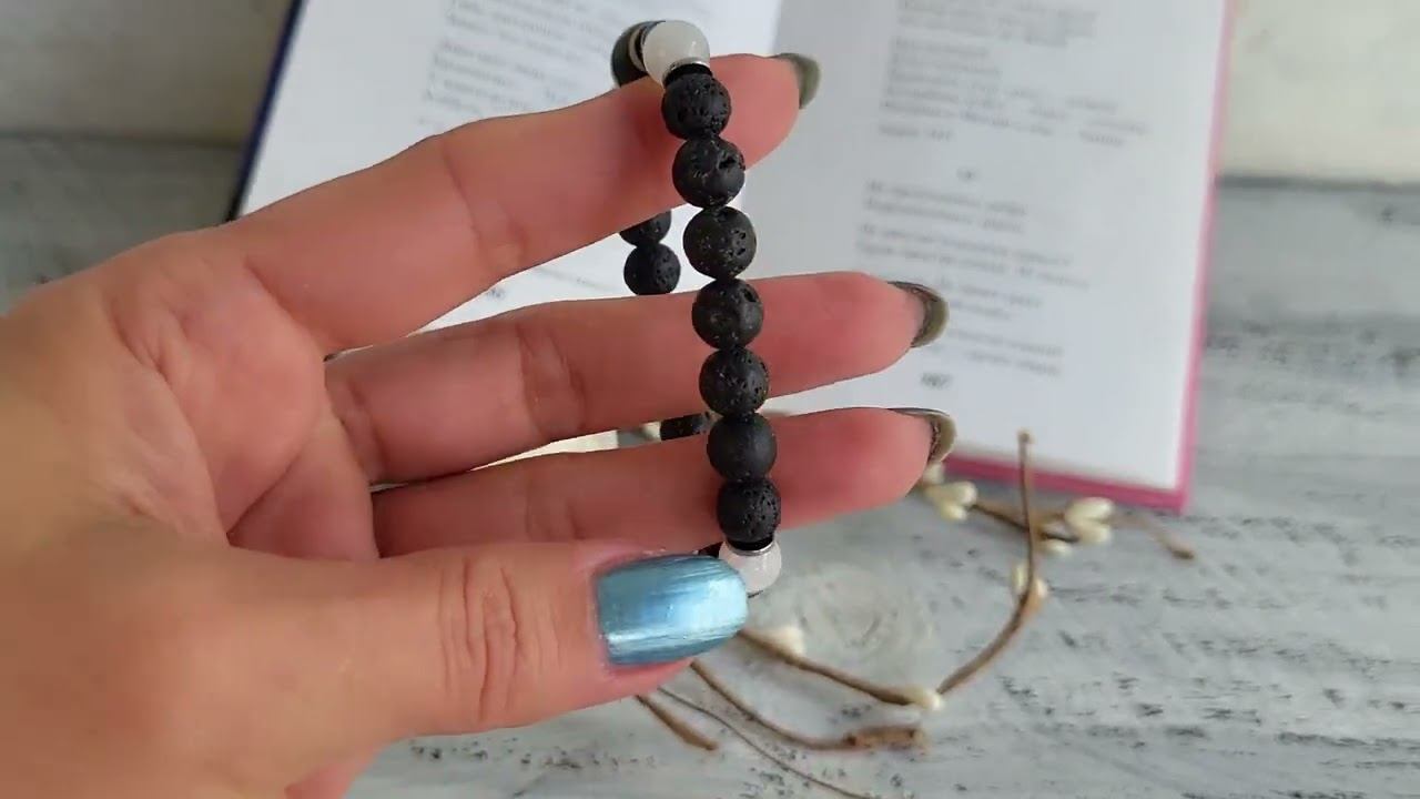 Браслет из лавового камня, лунного камня, с бусиной ДЗИ Гаруда, ДЗИ Земля и небеса: лавовый камень шарик 8 мм., лунный камень шарик 8 мм., гематит рондель 2х6 мм., бусина ДЗИ «Земля и небеса» (агат) 10х14 мм., ДЗИ «Гаруда» (агат) 10х14 мм., длина 19 см. на резинке (на размер запястья 17- 18 см.). купить украшения можно в нашем магазине https://www.livemaster.ru/samotsvety-ot-granat-mk?view=profile