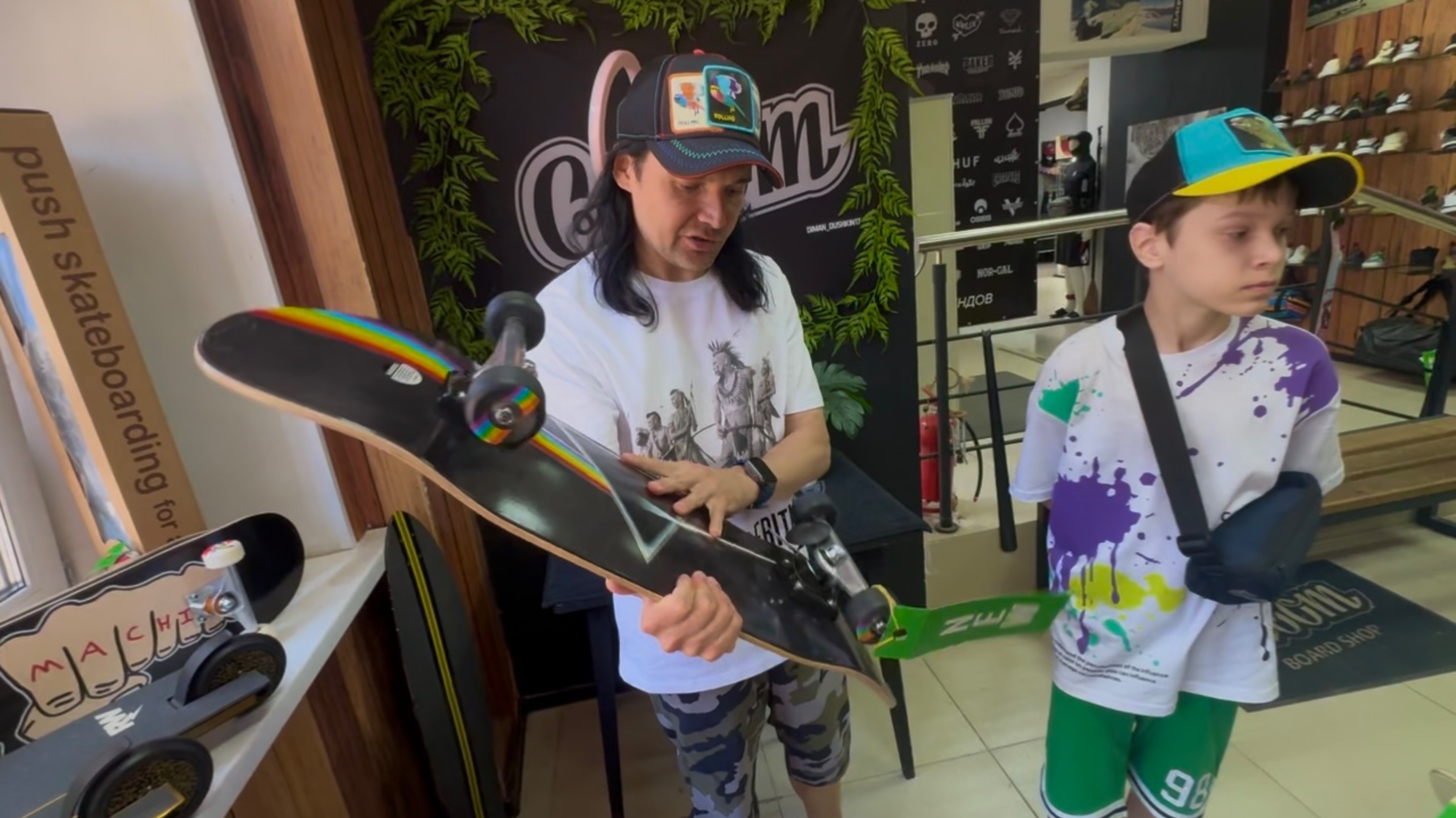 Гуляем всей семьёй, зашли в магазин Сквот, у Динияра появилось желание купить новый скейтборд 🛹