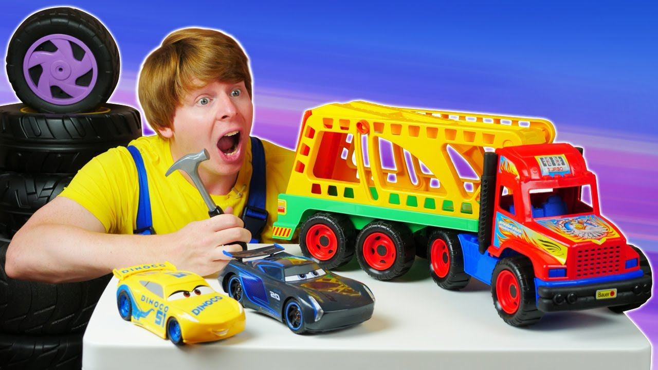 Автомастерская Саши: автовоз вез Тачки на гонки и сломался! Мультфильмы про машинки для мальчиков