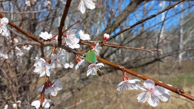 Малинница — ранняя небольшая бабочка с зелёными крыльями!