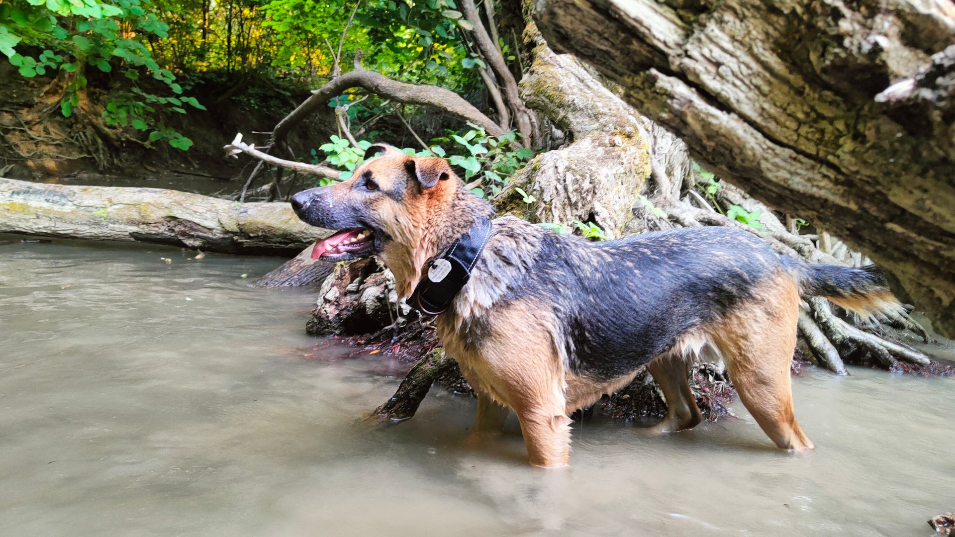 Собаки Альфа и Берта спасаются от жары на реке