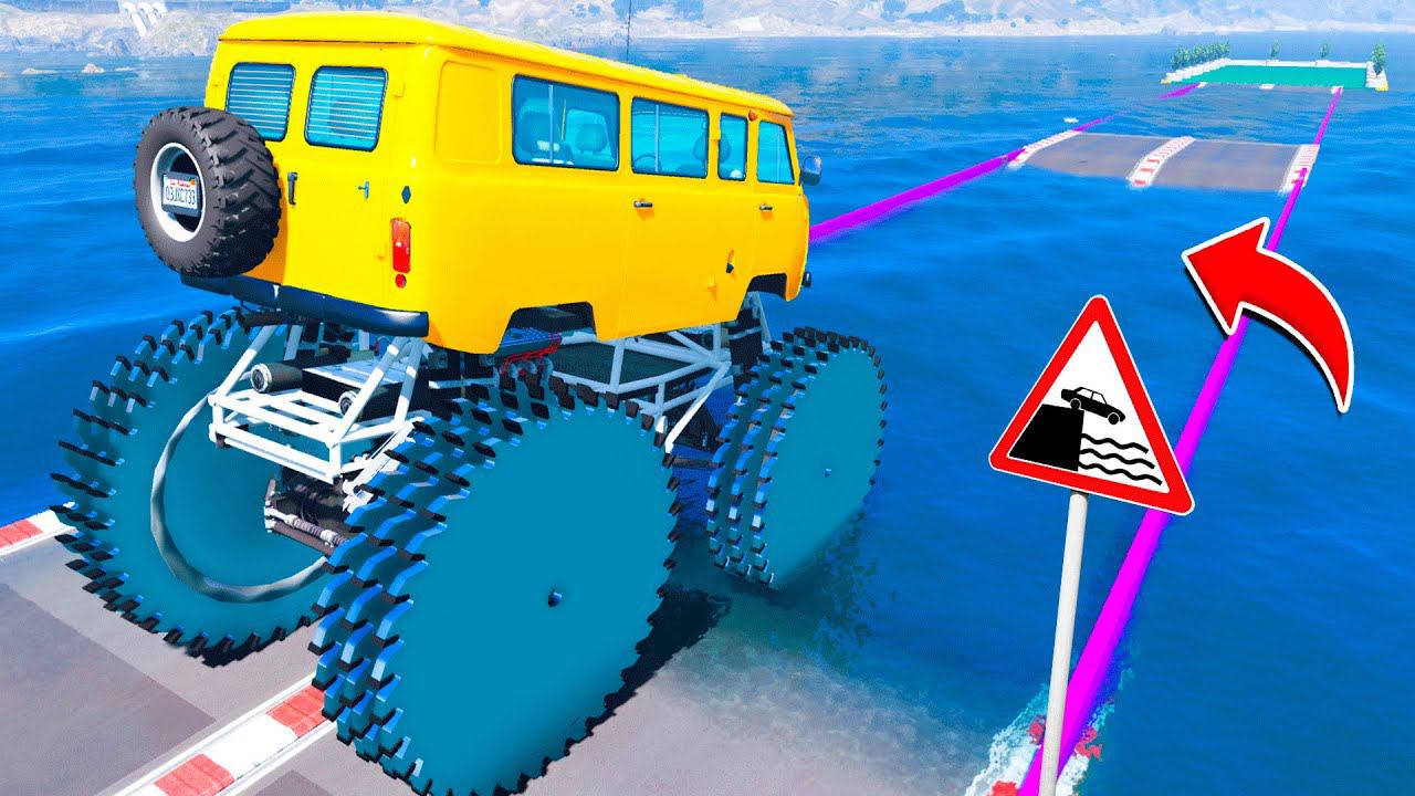 СМОЖЕТ ЛИ ГИГАНТСКАЯ БУХАНКА С ПИЛАМИ ПРОЕХАТЬ ГЛУБОКУЮ ЯМУ С ВОДОЙ в ГТА 5 МОДЫ ЭКСПЕРИМЕНТЫ GTA 5