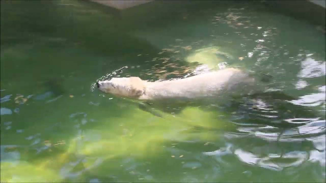 Белка наматывает круги на суше, а Стрелка в воде.
