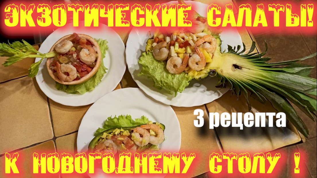 Приветствую Вас, мои подписчики и зрители!!! Много говорить не буду- видео скажет все за меня. Давайте сегодня немного пофантазируем. Окажемся на далёком необитаемом острове, где много вкусных фруктов, светит яркое солнце и слышится морской или океанический прибой. Представили? А теперь, давайте перенесем эти ощущение в нашу суровую зимнюю действительность и добавим немного экзотике к нашему празднику, сделав новогодней стол ещё более праздничным. Другими словами, давайте добавим лета!!! Присоединяйтесь ко мне и мы приготовим три варианта офигенных экзотических салата, которые станут не просто блюдами на вашем новогоднем столе, но и потрясающем его украшением!!!! Всем приятного просмотра и приятного аппетита. И помните: "готовить - это просто" салат,экзотика,новогодние рецепты,праздничные рецепты,вкусные рецепты,рецепты с ананасом,рецепты с авокадо,креветки,готовить это просто,еда,еда я люблю тебя,едим вкусно,вкуснятина,food,goodfood,fitnessfood,НГ,рецепты для нового года,рецепты для новогоднего стола,новогодний стол,вкусные салаты,необычный салат,супер рецепт,готовим быстро,готовим вкусно,готовим просто,новогодний стол дёшево,как удивить,вкуснейшие,сделать салат