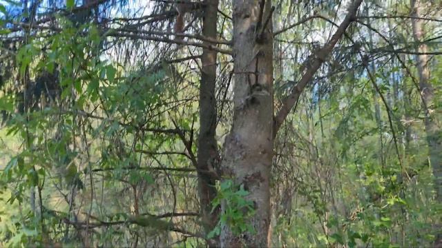 A child runs after a squirrel in the forest