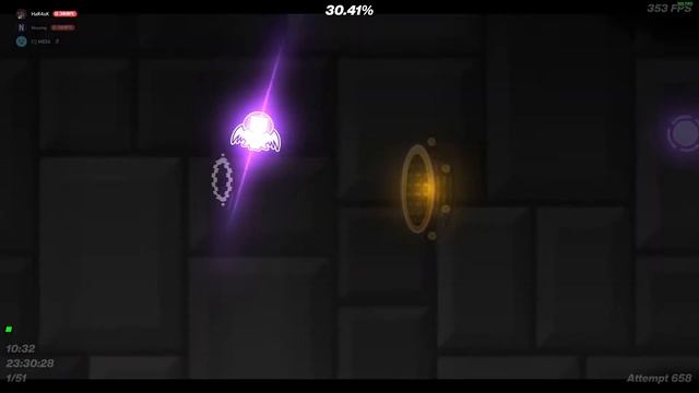 Info: - Attempts in original: 658 - Attempts in copy: 1008 - Total attempts: 1 666 - ID: 76239563 - Place in the top: none - My Hardest: Subsonic Links: - Discord Server - https://discord.gg/fuwzmpt - VK - https://vk.com/govorovaleksandr - Song - https://www.youtube.com/watch?v=gk-aCL6eyGc PC specifications: - CPU: Intel Core I7 3770k (4182MHz) - GPU: GTX 960 2gb - RAM: 16gb DDR3 (3600MHz) - Motherboard: ASUSTeK P8Z77-M - Mouse: LogiTech G502 Hero - Keyboard: HyperX Origins 60 - Microphone: Dexp U700 - Monitor: Acer Nitro VG252QXbmiipx (240hz) - Second Monitor: SyncMaster SA350 (77hz) - Headphones: HyperX Cloud Alpha S