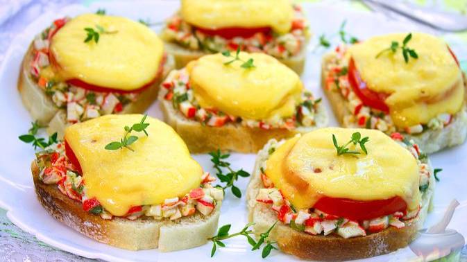 В горячем виде ещё вкуснее. БУТЕРБРОДЫ С КРАБОВЫМИ ПАЛОЧКАМИ И СЫРОМ