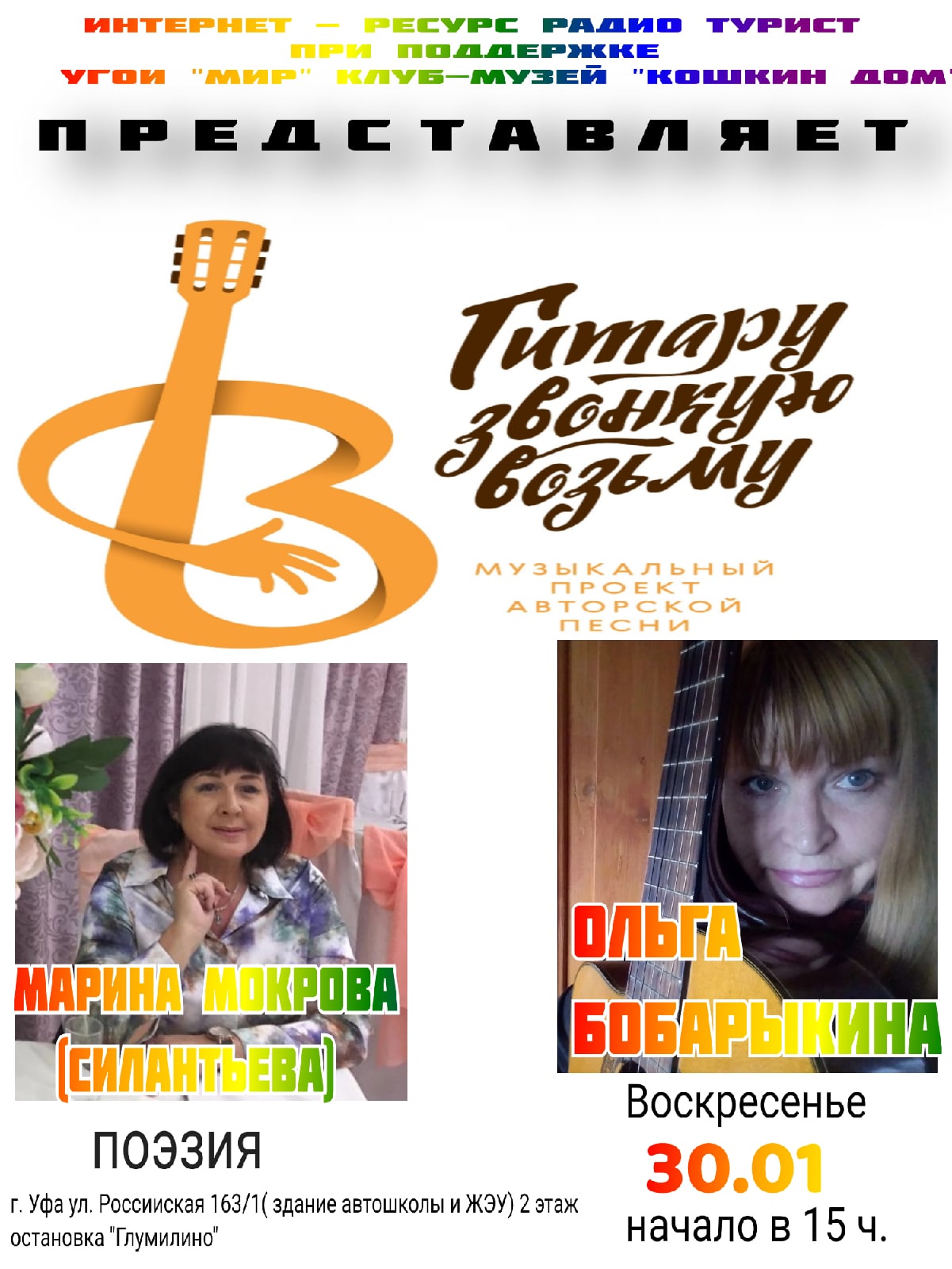 Концерт проекта "ГИТАРУ ЗВОНКУЮ ВОЗЬМУ". Автор-исполнитель Ольга Бобарыкина и поэтесса Марина Мокрова (Силантьева). г. Уфа. 30.01.22.