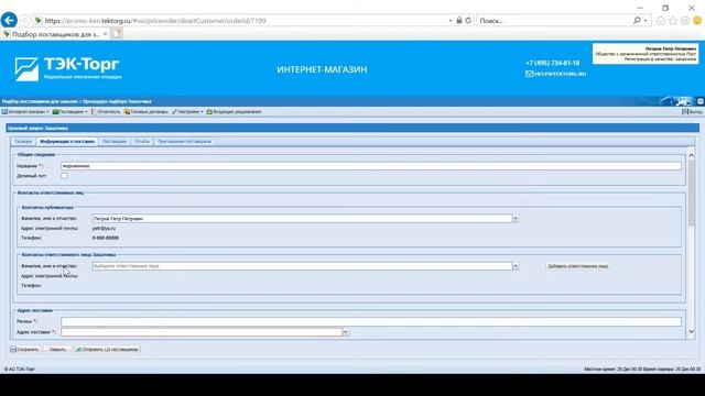 0:00 Общие сведения 0:31 Регистрация заказчика в интернет-магазине 2:19 Регистрация дополнительного пользователя заказчика в интернет-магазине 4:49 Утверждение доверенностей пользователей 6:37 Изменение ролей пользователя 7:20 Личный кабинет заказчика в интернет-магазине 9:28 Выбор номенклатуры позиций товаров, работ, услуг заказчиком в интернет-магазине 12:14 Создание спецификации закупки с выбранными позициями 17:52 Подбор поставщиков для закупки 26:17 Экспресс-заказ в интернет магазине 29:06 Контакты