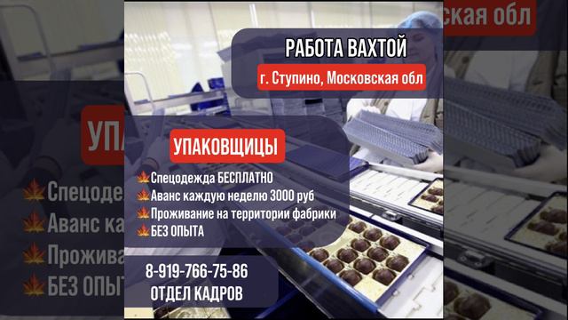 На шоколадную фабрику в связи с увеличением производства открыт дополнительный набор упаковщиц, фасовщиц. 📝Можно забронировать место уже сейчас ОТДЕЛ КАДРОВ 👇🏻👇🏻👇🏻 ☎️ 89197667586 (WhatsApp, Viber) http://wa.me/79197667586 ☎️ 89772511123 (WhatsApp, Viber) http://wa.me/79772511123 Наш Телеграмм канал с видео о работе и отзывами сотрудников: Работа.Вахта.Абсолют Подписывайтесь, и будьте в курсе всех новостей с наших производств. 🤳🏽 https://t.me/vahta_ok Яндекс Дзен: https://clck.ru/3CMSQT Страничка ВК: https://clck.ru/39yBwc Страничка в ОК: https://clck.ru/39yC23 #тольятти #ульяновск #нижнийновгород #челябинск #краснодар #кемерово #новокузнецк #альметьевск #липецк #тверь #иваново #нижнийтагил #курган #армавир #абакан #майкоп #калуга #смоленск #таганрог #златоуст #копейск #железногорск #ростов #елец #крым #нижнекамск #орск #арзамас #саранск