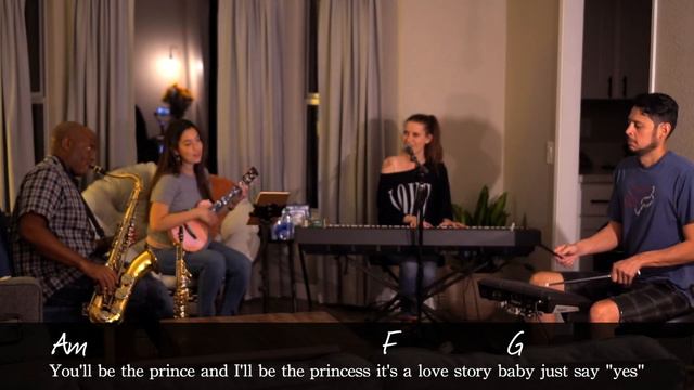 Today we are playing Love Story by Taylor Swift. This play-along has the lyrics and chords for Love Story. These are the easy chords. If you'd like to sound like the recording, put your capo on fret 2. I also made a printable PDF with the chords, lyrics, chord charts, and strumming patterns. If you'd like the printable sheet music to go along with this, follow the link below. The link will take you to my Patreon page, where you'll find hundreds of pages in sheet music and educational PDF resources I make for my ukulele students. PRINTABLE LINK https://www.patreon.com/posts/43578343 TUTORIAL VIDEO Coming soon! JOIN THE PATREON FAM! Get access to all of the printables I make for my subscribers and join us on our weekly lessons via zoom https://www.patreon.com/bernadetteteachesmusic UKULELE USED Enya E6 ukulele in pink https://amzn.to/31UyQBz About us: This is my band, 2 Hits & A Miss. Quincy plays saxophone and Jonathan plays percussion. Abby, who is singing and playing keyboard in this video, was a guest! She has a YouTube channel where she shares covers, ukulele tutorials, and original music. https://www.youtube.com/user/helloabbylyons --- UKULELE CHALLENGES 1. 30 Day Uke Challenge https://www.youtube.com/watch?v=d4TkFn5jz-A&list=PLJFa3EaocfZncpdhCRBCF302yIHnaRxOq 2. 30 Day Uke Songs Challenge https://www.youtube.com/watch?v=1yjHnX1XrH4&list=PLJFa3EaocfZmF5B_jvdBTahGVWftWFbq7 3. Fall in Love with Uke https://www.youtube.com/watch?v=Q2YC6vwaQdA&list=PLJFa3EaocfZkeh4bFHZwohiVfHaeisbM0 4. 12 Days of Christmas https://www.youtube.com/watch?v=lETD2BdSq3o&list=PLJFa3EaocfZl90yO2INHJK97ooSebwq_e 5. Uke Beatle Mania https://www.youtube.com/watch?v=49jq77OxIv8&list=PLJFa3EaocfZmqrcWh5HDoS78KM2hQoyUm 6. 30 Day Uke Course https://www.youtube.com/watch?v=yBSHVqtEnC8&list=PLJFa3EaocfZkdZC1aJFhsTTOnUbXZBd2D --- Here are some useful links: SUBSCRIBE ⇢ https://tinyurl.com/y7ej5xe6 WOULD YOU LIKE TO LEAVE A TIP? You can make a donation to this channel via PayPal or Venmo. All gifts are appreciated :) https://paypal.me/BERNADETTEETCHEVERRY VENMO: @bernadetteteachesmusic ORANGE 12 AMPLIFIER https://amzn.to/3hkYiX1 CABLE FOR AMPLIFIER (GOLD) https://amzn.to/2Yudmsw LOW G UKULELE STRINGS https://amzn.to/3eZIBDb UKULELE CAPO https://amzn.to/2zrSf1a UKULELE HUMIDIFIER https://amzn.to/2z3hLts UKULELES ON MY WALL https://www.enya-music.com