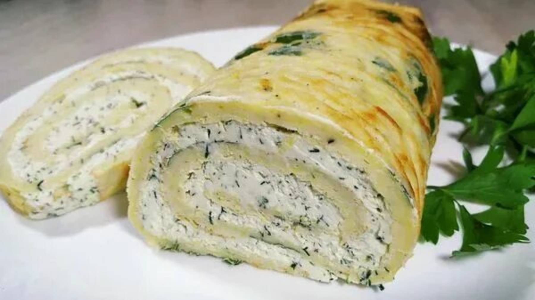 Кабачковый рулет с начинкой из творожного сыра. Очень вкусно!