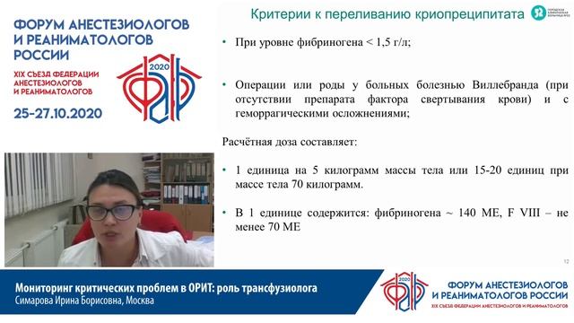 Трансфузиолог в ОРИТ Симарова ИБ ФАРР 2020