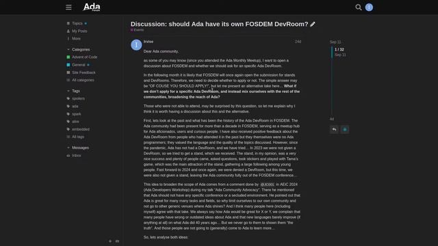 Встреча 05-10-2024: 00:05 Введение и новости • Приветствие участников октябрьской встречи Ada Meetup. • Представление тем: Эй Джей и Макс. • Объявление о выпуске новой версии компилятора GCC GAT 14.21. • Введение исключительных контрактов в Ada. 01:47 Исключительные контракты • Исключительные контракты позволяют аннотировать функции и процедуры. • Spark ранее ограничивал обработку исключений. 04:21 Поддержка и гранты • Кристиан Стрексу получил грант от фонда NLNET для работы над Ironclad. • Ironclad - важный проект, заслуживающий внимания. 06:20 Введение в Jazz • Jazz - генератор статических сайтов, созданный с использованием Markdown. • Пример использования: создание сайта для документации по Ada. • Простота использования и настройки шаблонов. 08:19 Настройка и использование Jazz • Пошаговая инструкция по созданию нового сайта с помощью Jazz. • Поддержка различных шаблонов и настроек. • Возможность использования локального веб-сервера для тестирования. 12:12 Заключение и планы на будущее • Создание веб-сайта с помощью Jazz. • Планы по автоматизации процесса через GitHub Actions. • Поддержка модулей и внедрение компилятора Ada в Jazz. 14:54 Создание повторяющихся элементов • Возможность создания повторяющихся элементов, таких как теги. • Определение массивов для хранения данных, таких как заметки и проекты. • Планы по импорту JSON-файлов для более гибкого использования. 15:52 Использование шаблонов AWS • Возможность редактирования шаблонов AWS. • Использование табличных тегов для итерации по массивам. • Пример создания оглавления и ссылок на страницы. 16:49 Создание каталогов и поддержка • Создание каталогов для каждой страницы. • Поддержка различных платформ, включая Windows. • Наличие документации по шаблонам и тегам. 18:52 Поддержка взлома • Использование sh-скриптов для выполнения задач. • Планы по созданию псевдо-API для выполнения файлов в каталоге modules. • Возможность использования файлов Ada для обработки данных. 21:29 Перевод документации • Запуск сайта "Другая Украина" для перевода документации. • Перевод курса по Ada и добавление новых функций. • Планы по интеграции блога и комментариев. 27:14 Использование искусственного интеллекта • Перевод документации вручную и с использованием искусственного интеллекта. • Обсуждение языкового барьера и важности перевода. 28:20 FOSDEM 2025 • Объявление о следующем выпуске FOSDEM 2025. • Обсуждение подачи заявки на удаленную комнату. • Планы по подаче заявки на полный или неполный день. 31:19 Конкурс и лабораторная комната • Автор планирует подать заявку на участие в конкурсе в эти выходные. • Крайний срок подачи заявок - пятница на следующей неделе. • Обсуждается возможность предоставления лабораторной комнаты или стенда. 32:06 Общество пользователей Ada • Ассоциация Ada в Европе провела генеральную ассамблею. • Создано общество пользователей Ada, одобрено назначение президента и вице-президента. • Надежда на органичное развитие нового сообщества. 33:54 Глобальное общество пользователей Ada • Общество пользователей Ada сосредоточено в США. • Планируется расширение охвата на Австралию и Новую Зеландию. • Надежда на привлечение программистов Ada по всему миру. 36:07 Технические проблемы и веб-сайты • Обсуждение технических проблем с веб-сайтами Ada и Adah. • Веб-сайты временно не работают из-за технических проблем. 41:00 Работа с процессором Cherry • Обсуждение работы с процессор