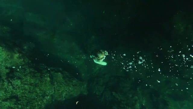 Купальщица ныряет в природную воду и плавает в ней.