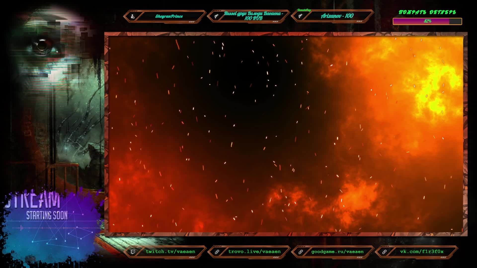 Если хотите поддержать меня как стримера - нажмите по данной ссылке https://www.donationalerts.com/r/f1r3f0x Donate for USD, EU all world - https://new.donatepay.ru/@vaeaen Во время стрима ваше сообщение появится на экране, и будет сопровождаться голосовым диктором. Поддержка на Boosty https://boosty.to/vaeaen Поддержка без комиссии: Сбер: 2202 2010 0629 1039 Тинькофф: 2200 7008 4677 0625 Основные каналы: Twitch: https://www.twitch.tv/vaeaen Trovo: https://trovo.live/Vaeaen GoodGame: https://goodgame.ru/channel/Vaeaen/ VKplay: https://vkplay.live/vaeaen Wasd: https://wasd.tv/vaeaen YouTube: https://www.youtube.com/channel/UCsl3CyRcImUYtWiCgEdvmjQ