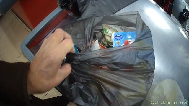 Еду сложил в пакеты на кассе.