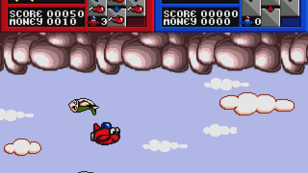 Игра сделана в стиле леталки. В качестве персонажей даются странные пузатые ребята-аэропланы, которые лупят врагов перчаткой на пружине. Направление удара задается кнопкой B, что не очень-то удобно. Враги вокруг какие-то бестолковые, и вообще игра весьма посредственная. Игра для 1-2 игроков.
