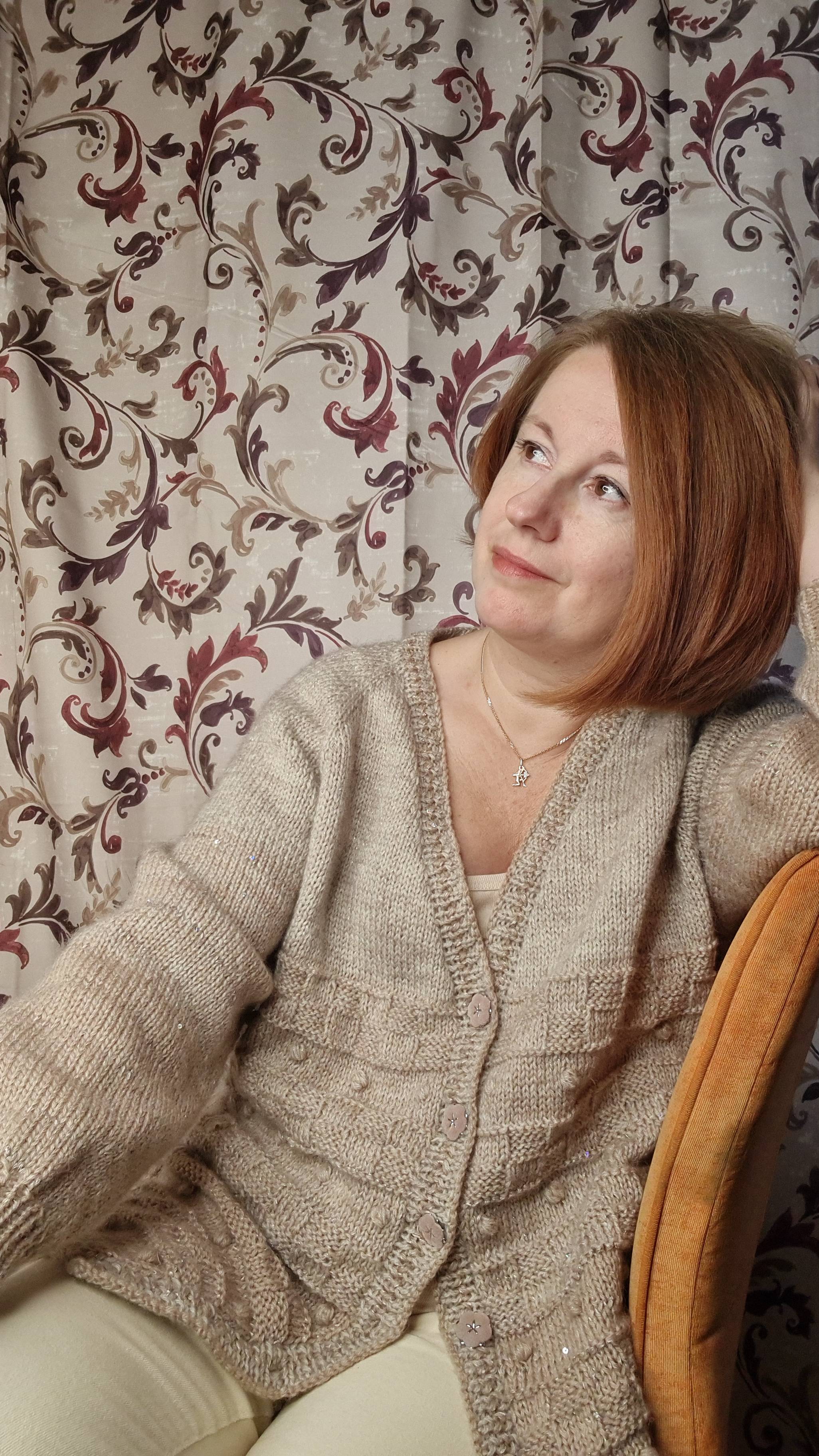 Кардиган регланом сверху, с V образным вырезом и анатомическим ростком, бесшовной техникой. МК выполнен в видеоформате + файл с расчетами и комментариями. Рассчитан на самостоятельное исполнение. Требуемые навыки в вязании: - набор петель; - вязание лицевых и изнаночных петель; - кромочные петли. МК без привязки к плотности вязания, т.е. подставляя свои данные в расчет Вы свяжите изделие на любой размер и из пряжи на Ваш выбор. МК на относительно стандартную фигуру, перепад между размерами верхней и нижней частью тела в пределах одного размера (например верх 48 и низ 50), вытачки для подгона не предусмотрены. Что дается в МК: 1. Расчет реглана сверху с учетом анатомического ростка. 2. Расчет ростка и поворотные точки без дырочек. 3. Прибавки в регланных линиях и V образном вырезе. 4. Расчет V образного выреза. 5. Набор петель проймы рукава, расчет убавок рукава. 6. Переход к манжету. 7. Простой способ закрытия петель иглой. 8. Расчет подрезов. МК даст Вам базовые знания, которые в дальнейшем позволят использовать дополнительные приемы по Вашему выбору. Рекомендуемые параметры для пряжи: в 100г от 200м до 500м, спицы по рекомендации к пряже. В представленном видео изделие вяжется из пряжи 100г 550м в 2 нити, 20% шерсть и 80% акрил, ALIZE angora gold двух оттенков. Вес изделия 560г (длина 76см, обхват 116см, длина рукава от шеи до манжета 68см) МК кардигана , артикул №5: https://taplink.cc/lyudmiladubnevskaya WhatsApp или телеграм 8(993)913-08-85 : укажите №5 и Ваш е-mail.