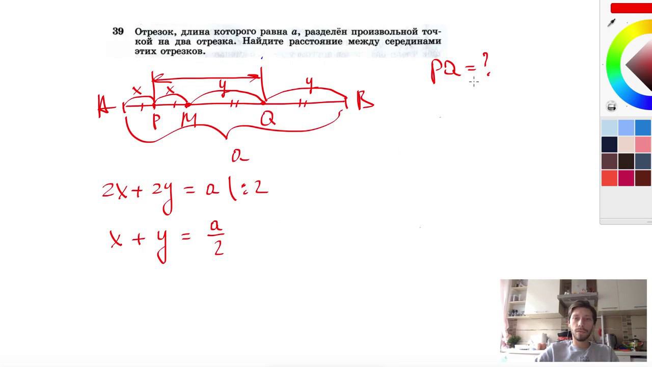 №39. Отрезок, длина которого равна а, разделен произвольной точкой на два отрезка. Найдите расстояние между серединами этих отрезков. Мой второй канал для подготовки к ЕГЭ и ОГЭ - https://www.youtube.com/ЕвгенийСумин Инстаграм - https://www.instagram.com/EGE_OGE.math Личный инстаграм - https://www.instagram.com/ee_sumin VK - https://vk.com/evgeniysumin FB - https://www.facebook.com/EvgeniySumin