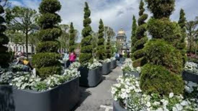 Цветущие сады на Исаакской площади в Санкт-Петербурге