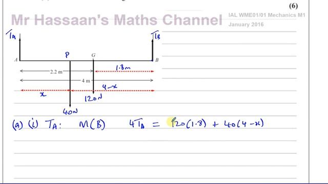 WME01/ 01, Mechanics M1 (IAL) January 2016, Q5, Moments, Non Uniform Body