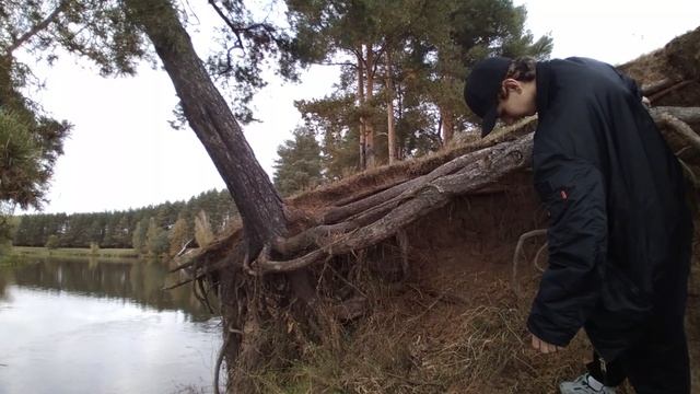 Корневая система сосны приспособилась к жизни под наклоном на берегу реки Клязьма