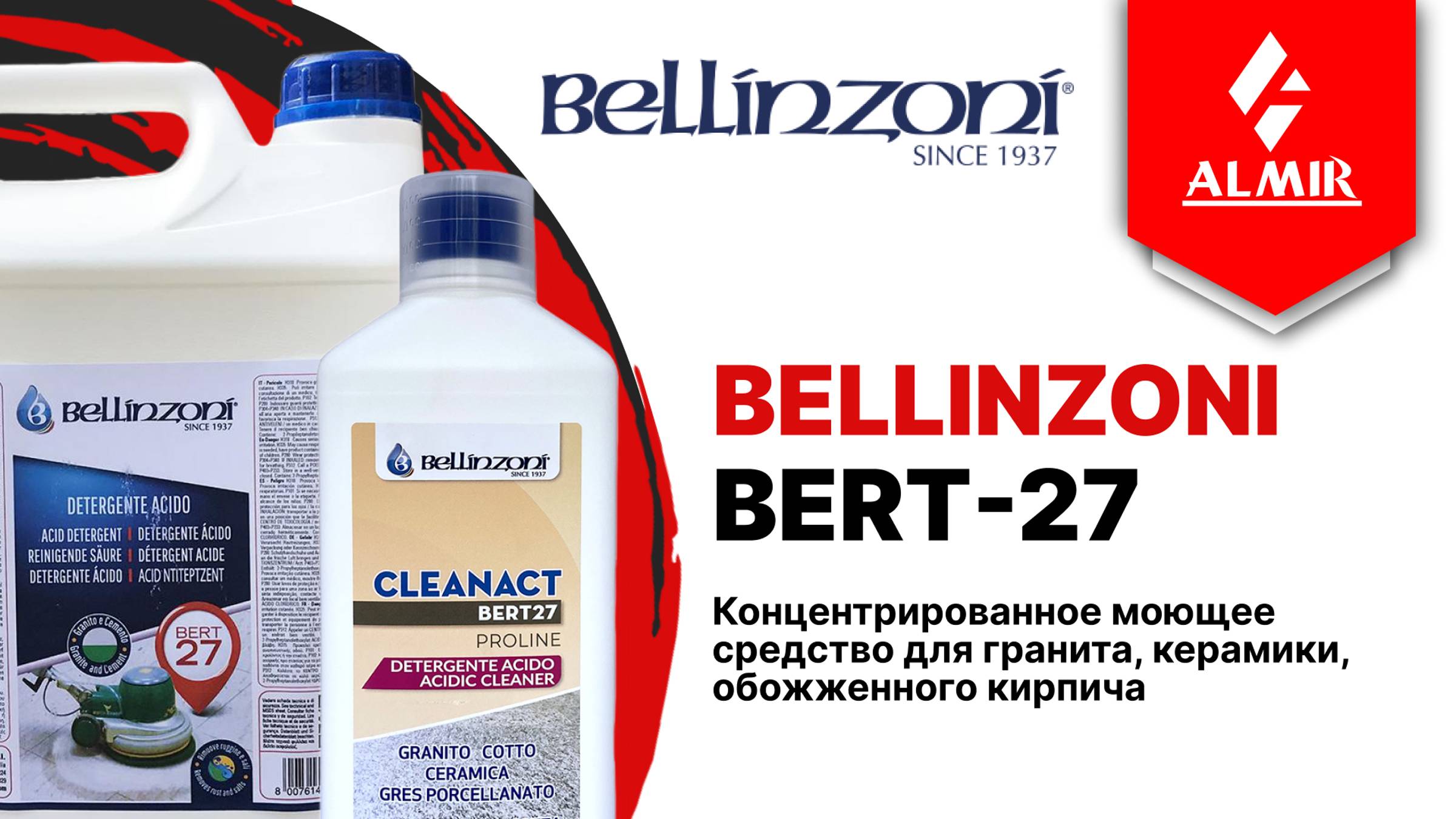 Концентрированное моющее средство на основе кислоты для гранита, обожженного кирпича и керамической плитки. Очищает от любой грязи неорганического происхождения, ржавчины, может использоваться для очистки сильно загрязненных полов, удаления остатков строительного раствора, цементной пленки, солевых отложений, жирных загрязнений и обладает антисмольными характеристиками (против дыма и копоти) для химической очистки грязных фасадов. Не подходит для очистки полированного мрамора, мягких пород камня и любых других чувствительных к кислотам материалов. ООО «Компания АЛМИР» Инструмент, оборудование, химические средства для обработки природного камня Адрес: (офис и склад) г. Москва, 115201, Каширский пр., д. 21, стр. 1. Тел. +7 (495) 748-03-58 Бесплатный звонок по России 8-800-200-8665 e-mail: zakaz@almir.com www.almir.com Рабочие дни: понедельник - пятница: 9.30 - 18.00 суббота: 10.00 - 16.00 Ссылки Сайт Almir almir.com Блог Almir almirblog.ru VK Almir vk.com/company_almir Telegram Almir t.me/company_almir