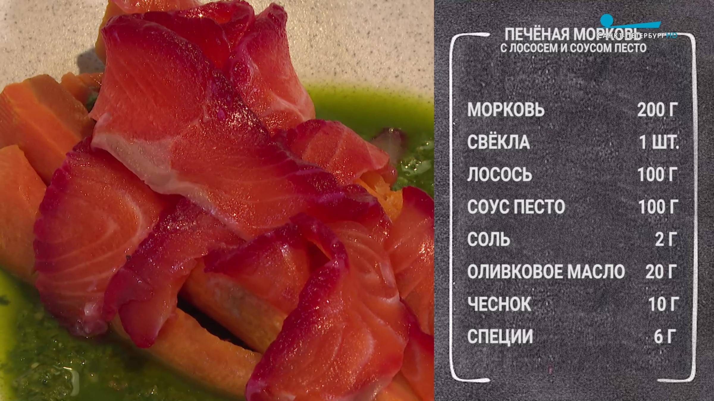 Рецепт печёной моркови с лососем и соусом песто делится шеф-повар Александр Богданов.
