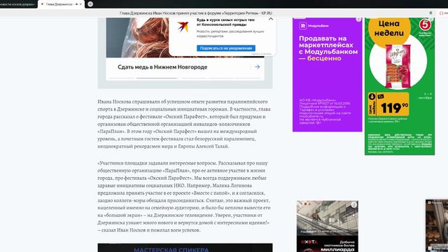 Глава Дзержинска Иван Носков принял участие в форуме «Территория Ритма»