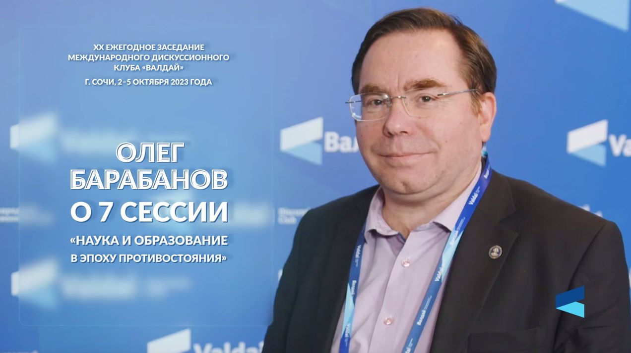Участники сессии, посвящённой роли науки и образования в современном мире, много говорили о влиянии геополитики на научные исследования, о том, что разрыв между Россией и Западом привёл к разрыву и научных контактов во многих сферах. Наука является достоянием всего человечества, и здесь трудно провести границы и барьеры. Восстановление научных контактов вполне может стать первым шагом к нормализации обстановки, считает Олег Барабанов, программный директор Валдайского клуба. Он рассказал об итогах седьмой сессии XX Ежегодного заседания «Наука и образование в эпоху противостояния».