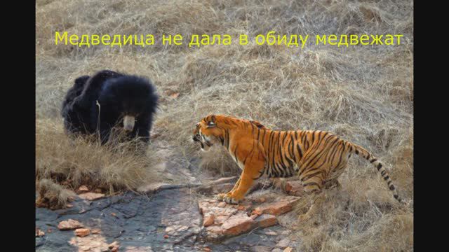 Композиция мелодия и 1) фото противостояния медведицы и тигра 00 - 01:02; 2) фото медведей 01:03 - 02:02; 3) фото "мамы" для жеребёнка 02:03 - 02:26; 4) фото большого кота 02:27 - 02:54