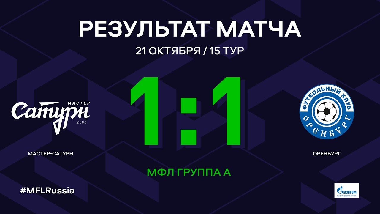 МФЛ. Мастер-Сатурн - Оренбург. Группа А. 15-й тур. Обзор