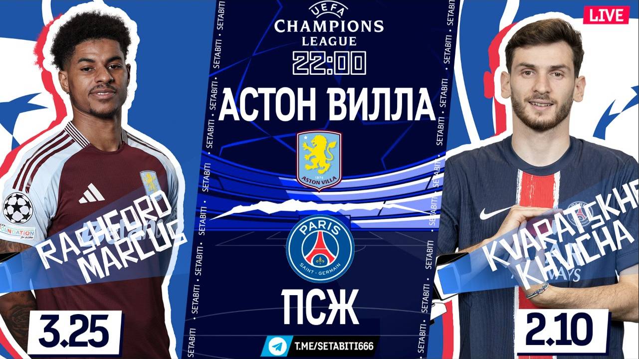 Астон Вилла - ПСЖ Онлайн Трансляция • Лига Чемпионов • Обсуждения • Статистика • Аналитика