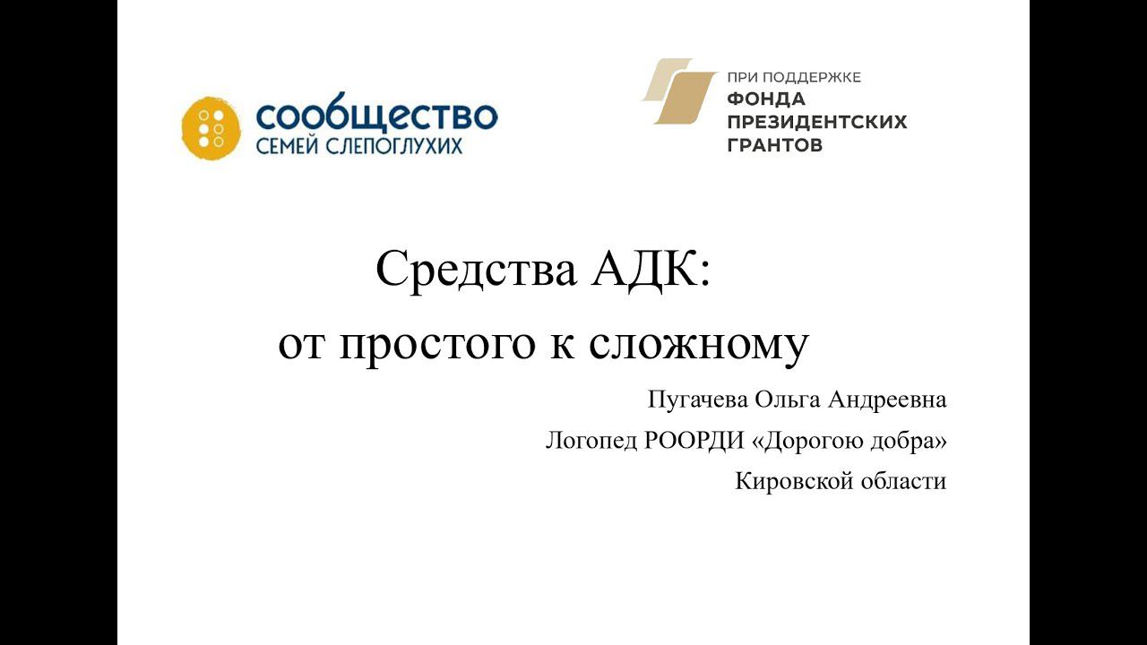 Семинар специалиста по альтернативной и дополнительной коммуникации (АДК) Пугачевой Ольги Андреевны "Средства АДК: от простого к сложному", проведенный в рамках проекта "Передышка с пользой", реализуемого при поддержке Фонд поддержки слепоглухих «Со-единение» и Фонд президентских грантов.