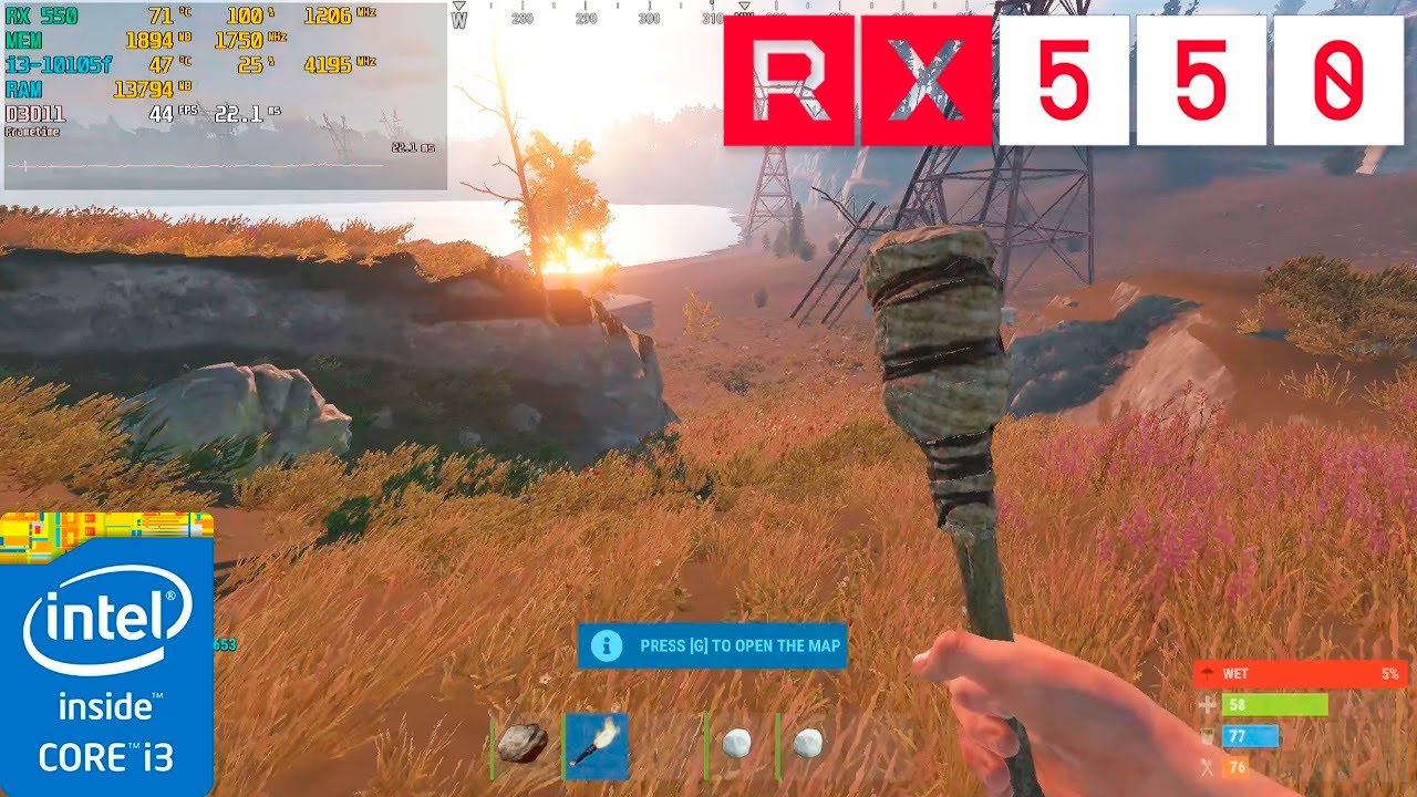 RUST : RX 550 + i3-10105f : 1080p - 900p - 720p Low Settings