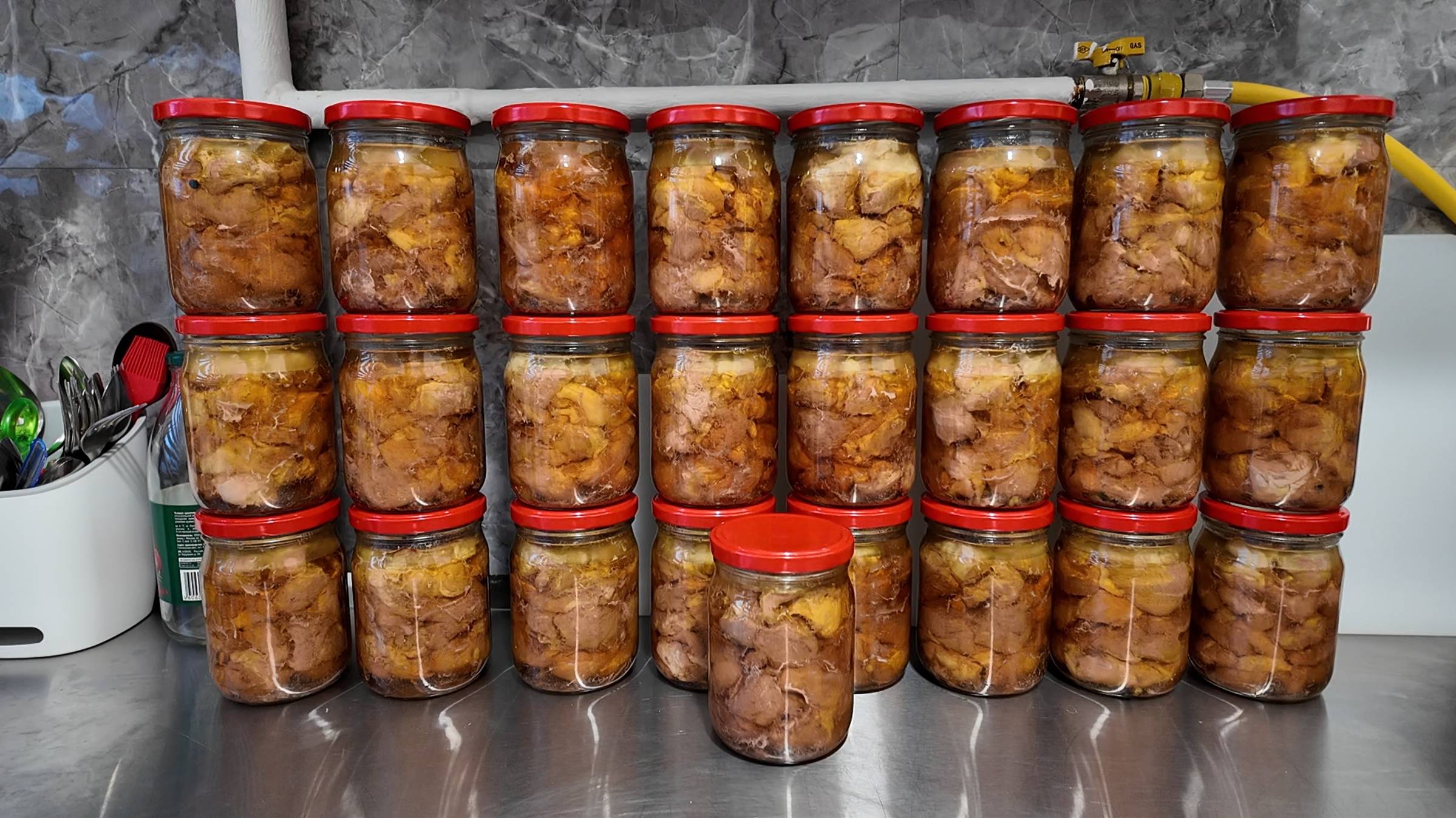 Стратегический запас домашней тушёнки из свинины в автоклаве Вейн 2 с автоматикой.