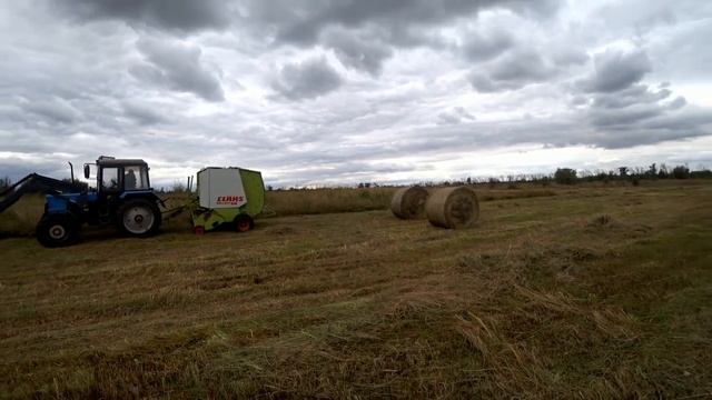 осенний сенокос.сгребаю сено . прессую сено и суданку