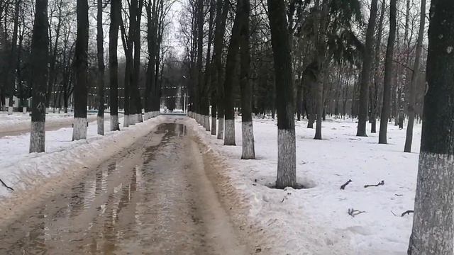 Короткая прогулка по парку Мира в Коломне. Слабый дождик и вода под ногами не испортили настроение. Помню, как здорово здесь летом. 16 марта 2023 года, снега всё меньше.