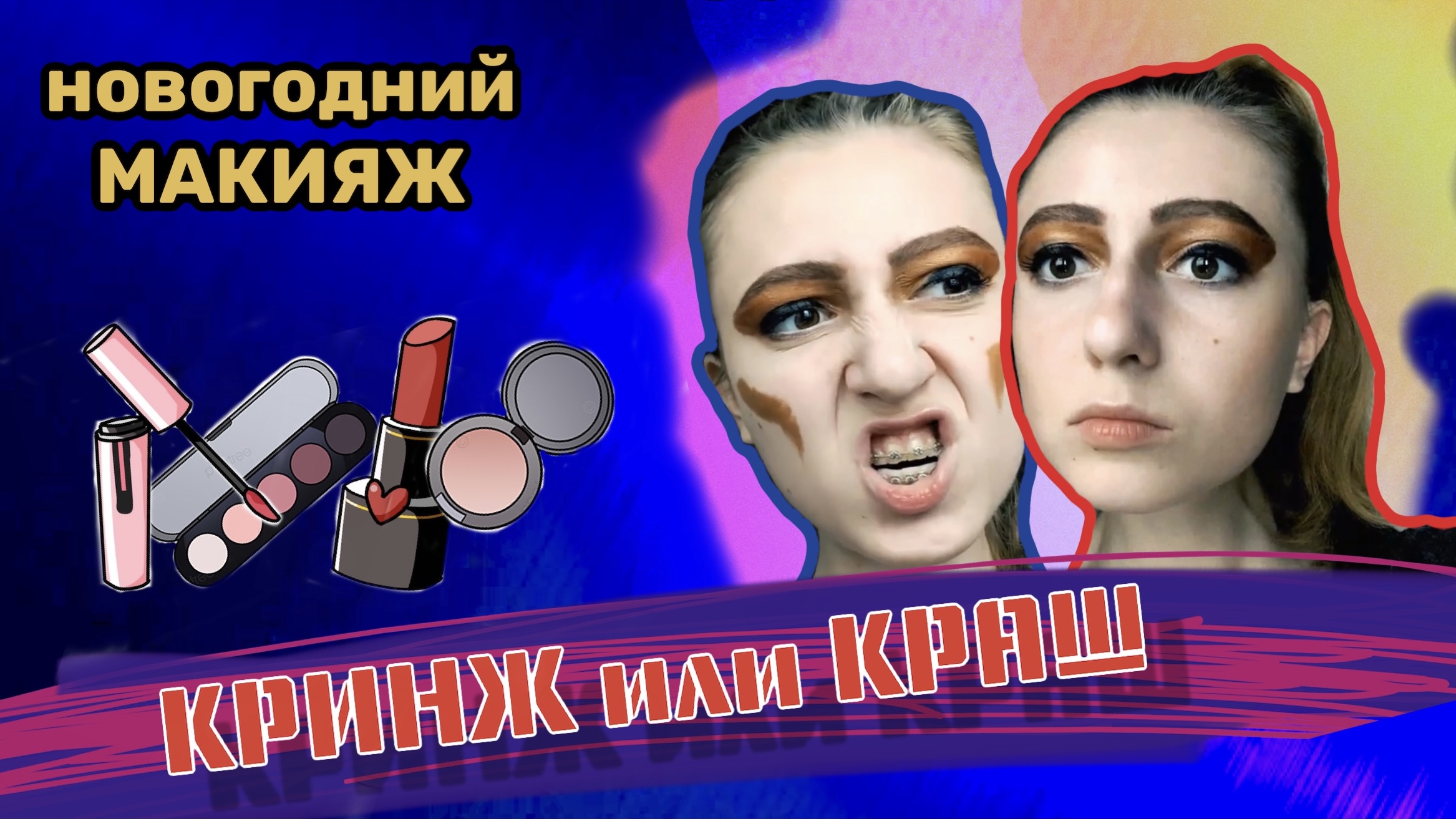 КРИНЖ или КРАШ?? новогодний макияж БЕЗ КИСТЕЙ