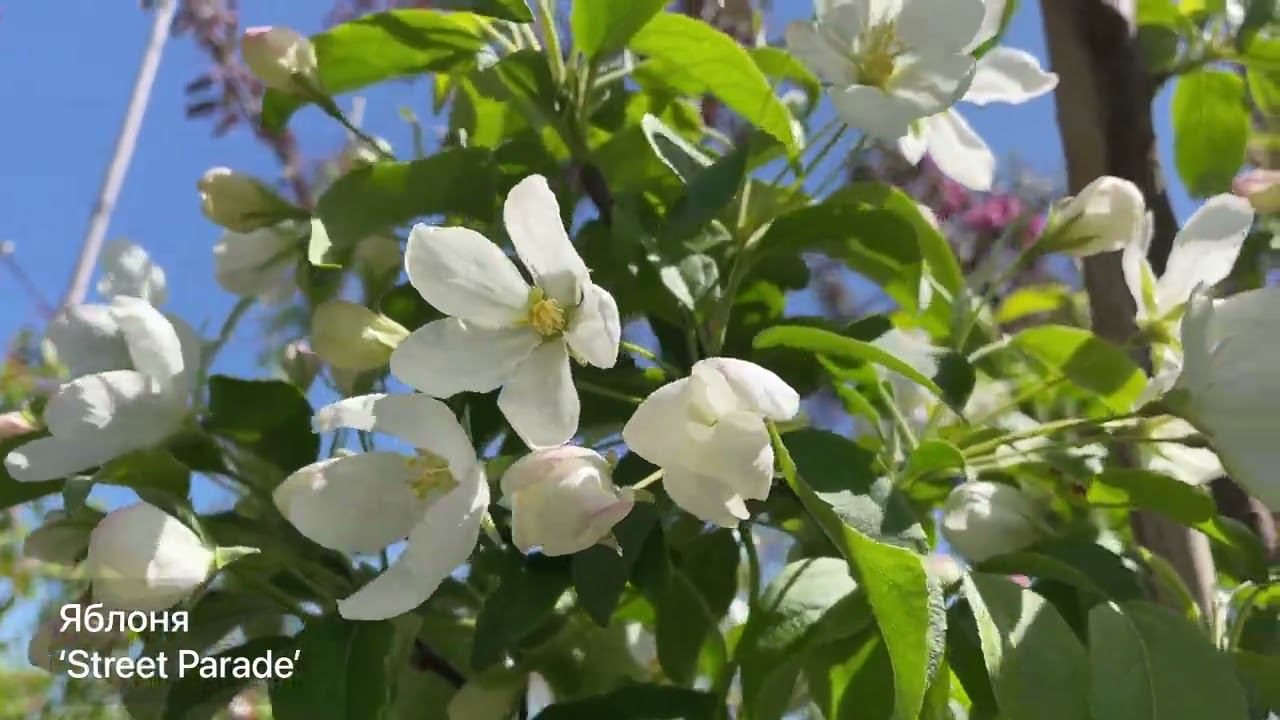 Яблоня ягодная Стрит Парад - крупный кустарник или небольшое деревце 4-6 м высотой, ширина 2-3 м. Бутоны розовые или ярко-розовые, после распускания цветки белые, простые, приятный аромат. https://yoly-paly.ru/catalog/yablonya/yablonya_strit_parad_malus_bac_street_parade/